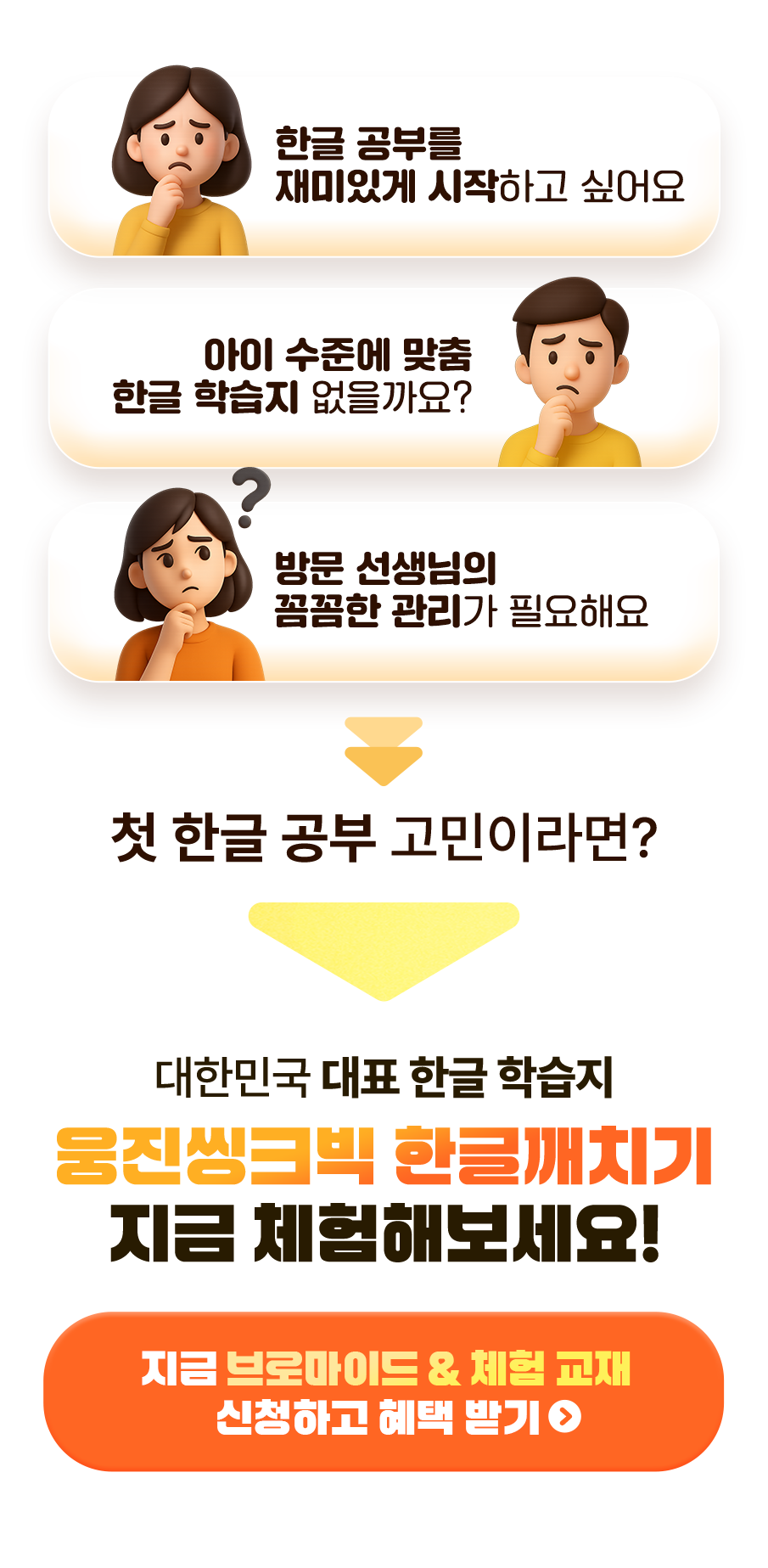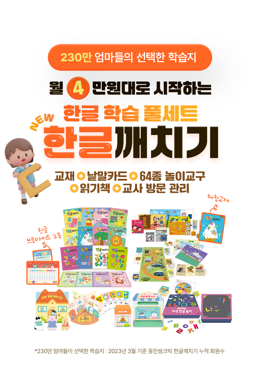 1. 수집하는 개인정보- 고객정보: 성명, 연락처- 자녀정보: 성명, 생년월일, 학년2. 개인정보의 처리 및 이용목적- 웅진씽크빅에서 제공하고 있는 서비스 및 제품에 대한 홍보 및 마케팅 정보 발송- 웅진씽크빅 내 이벤트, 혜택, 맞춤서비스 등의 정보 발송3. 개인정보의 처리 및 보유기간- 마케팅 동의 철회 시까지 (무료체험 종료일로부터 1년 이후 자동 동의 철회)※ 정보주체는 개인정보 수집 및 이용 동의를 거부하실 수 있으며, 미동의 시 웅진씽크빅 서비스의 이벤트 · 혜택 · 맞춤서비스 정보들을 받으실 수 없습니다.