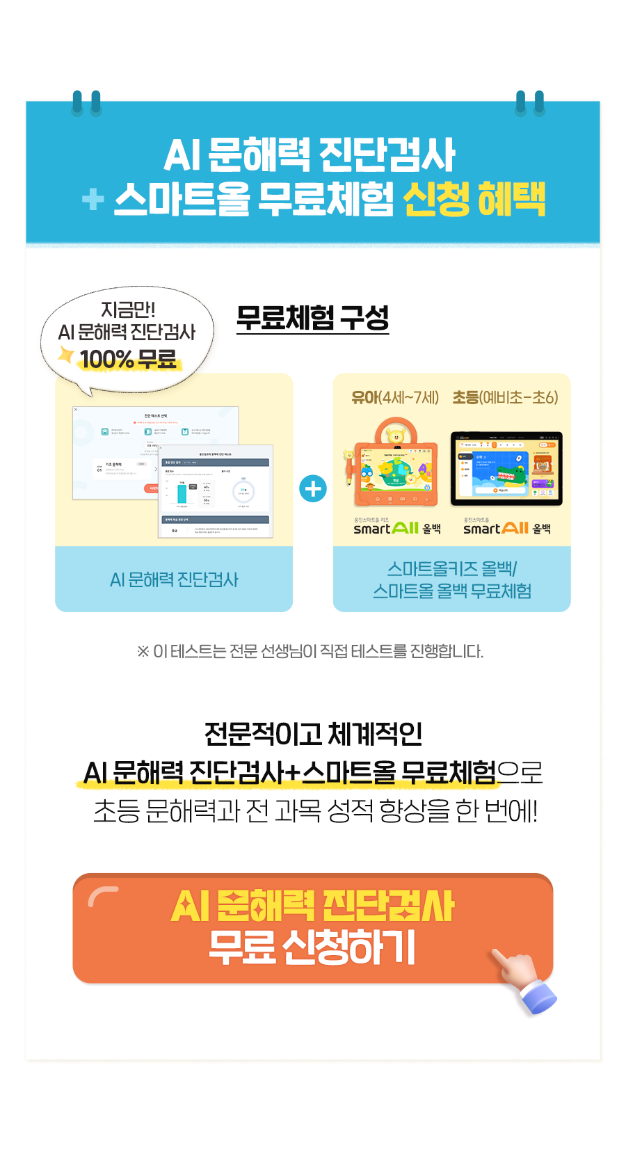 1. 목적- 무료체험 신청 및 상담- 만 14세 미만 아동 확인2. 항목: 자녀 이름, 자녀 생년월일3. 보유 및 이용기간: 무료체험 종료일로부터 1년 (기타 관련 법령 및 개인정보처리방침에 따름)※ 동의를 거부할 수 있으나, 동의 거부 시 무료체험 신청이 불가합니다.