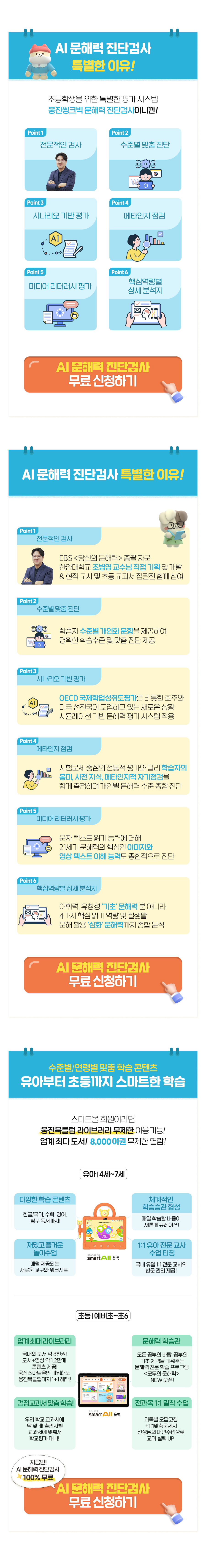 1. 수집하는 개인정보- 고객정보: 성명, 연락처- 자녀정보: 성명, 생년월일, 학년2. 개인정보의 처리 및 이용목적- 웅진씽크빅에서 제공하고 있는 서비스 및 제품에 대한 홍보 및 마케팅 정보 발송- 웅진씽크빅 내 이벤트, 혜택, 맞춤서비스 등의 정보 발송3. 개인정보의 처리 및 보유기간- 마케팅 동의 철회 시까지 (무료체험 종료일로부터 1년 이후 자동 동의 철회)※ 정보주체는 개인정보 수집 및 이용 동의를 거부하실 수 있으며, 미동의 시 웅진씽크빅 서비스의 이벤트 · 혜택 · 맞춤서비스 정보들을 받으실 수 없습니다.